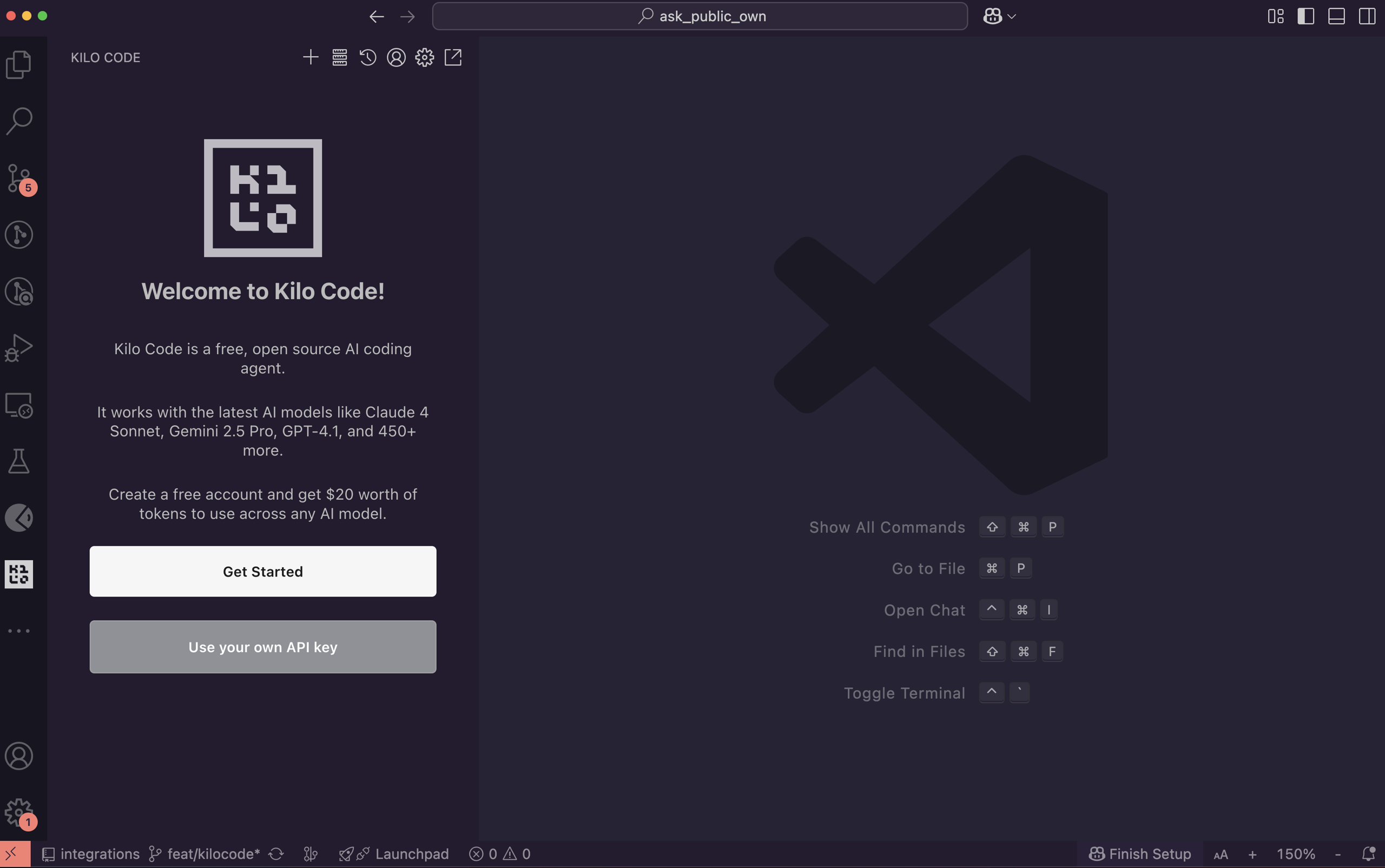 - KiloCode extension installed from the VS Code Extensions Marketplace.